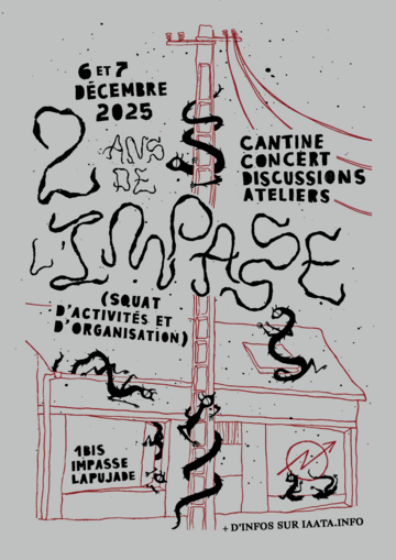 Le week-end des 6 et 7 décembre prochain, on fetera les 2 ans de l'Impasse ! Ouiii, déjà 2 ans qu'on squat un batiment d'activités sur Bonnefoy !!