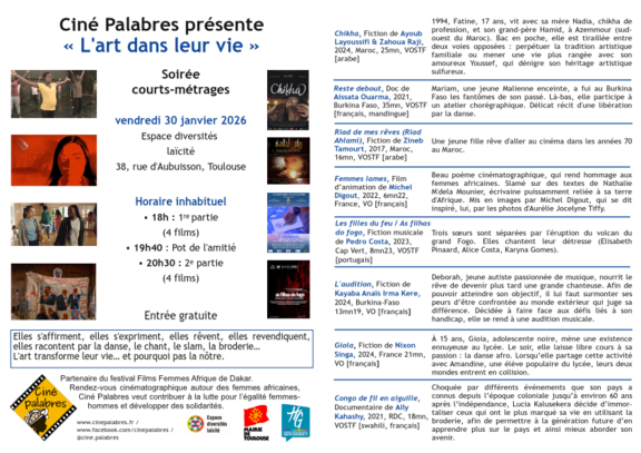 Ciné Palabres vous propose une soirée de projection de courts-métrages sur le thème : "L'art dans leur vie"