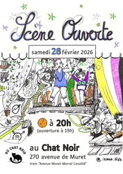 Pour la scène ouverte du 28 février qui aura lieu au local du chat noir (270 avenue de muret) nous organisons dans le même lieu en amont un atelier d'aisance scénique le vendredi 20 février de 18h à 20h. (ouverture informelle le jour J sur place à partir de 17h40).