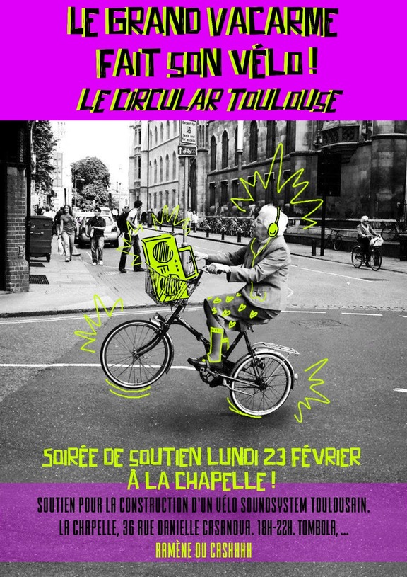 Lundi soir à la Chapelle à partir de 18h, viens découvrir le Circular : un vélo sound system conçu sur la base d'un vélo-cargo type triporteur.