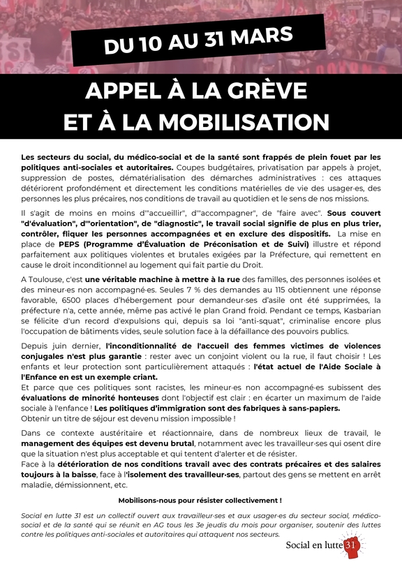 Mardi 10 mars est une journée de grève et de mobilisation dans le secteur social.