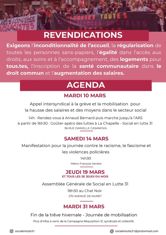 A 14h on se donne rendez-vous à Arnaud Bernard pour la manifestation direction l'ARS, et à partir de 16h30 viens partager un goûter-apéro des luttes à La Chapelle !