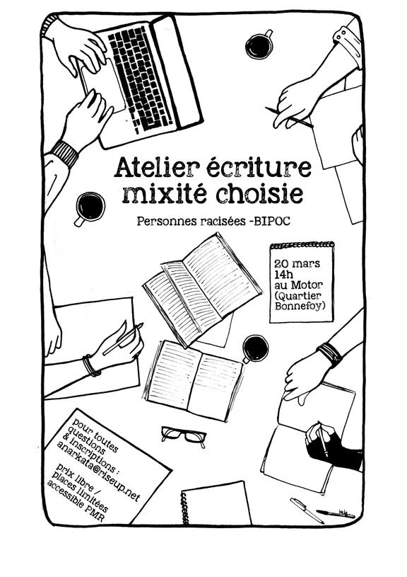 Atelier d'écriture et lecture en mixité choisie le 20 Mars au Motor à 14h.
