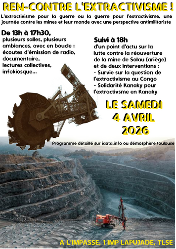avec des personnes de l'assemblée de lutte contre la réouverture de la mine de Salau (en ariège) qui feront un petit point d'actu sur la situation,