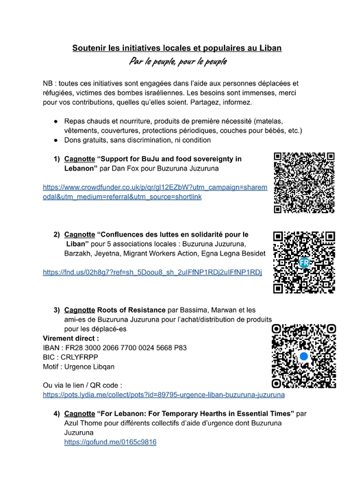 Face à l'intensification des attaques israéliennes au Liban depuis le début du mois de mars, les habitant.es s'organisent au sein de réseaux de solidarité, notamment pour fournir aux personnes déplacées par la guerre de quoi se nourrir, se loger et se soigner.